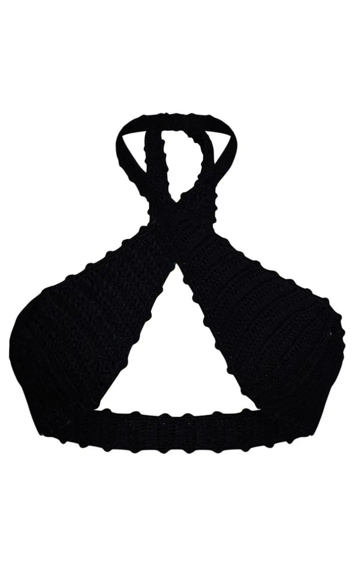Make room in your vacay wardrobe for this dreamy black crochet bandeau tie front beach top, it’s a definite yes from us. This top features a black crochet material with a tie front design and a bandeau style, what’s not to love? Style with the matching skirt and strappy heels for a look everyone will be asking about.