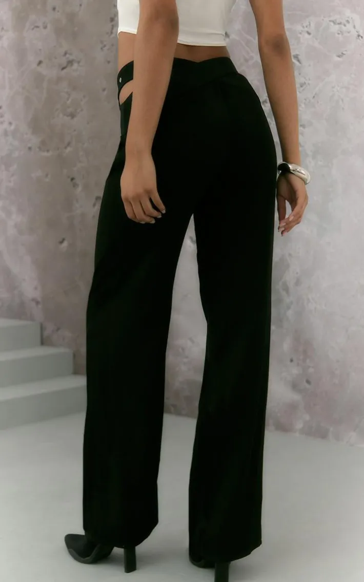 Channel all the chic vibes into your new season wardrobe with these black cut out buckle detail waistband straight leg pants, you’re sure to be earning all the style points doll. Made with a black material with a cut out design and a buckle detail, how could you say no to these straight leg pants. Team these black pants with your fave top and simple accessories for a look everyone will want.