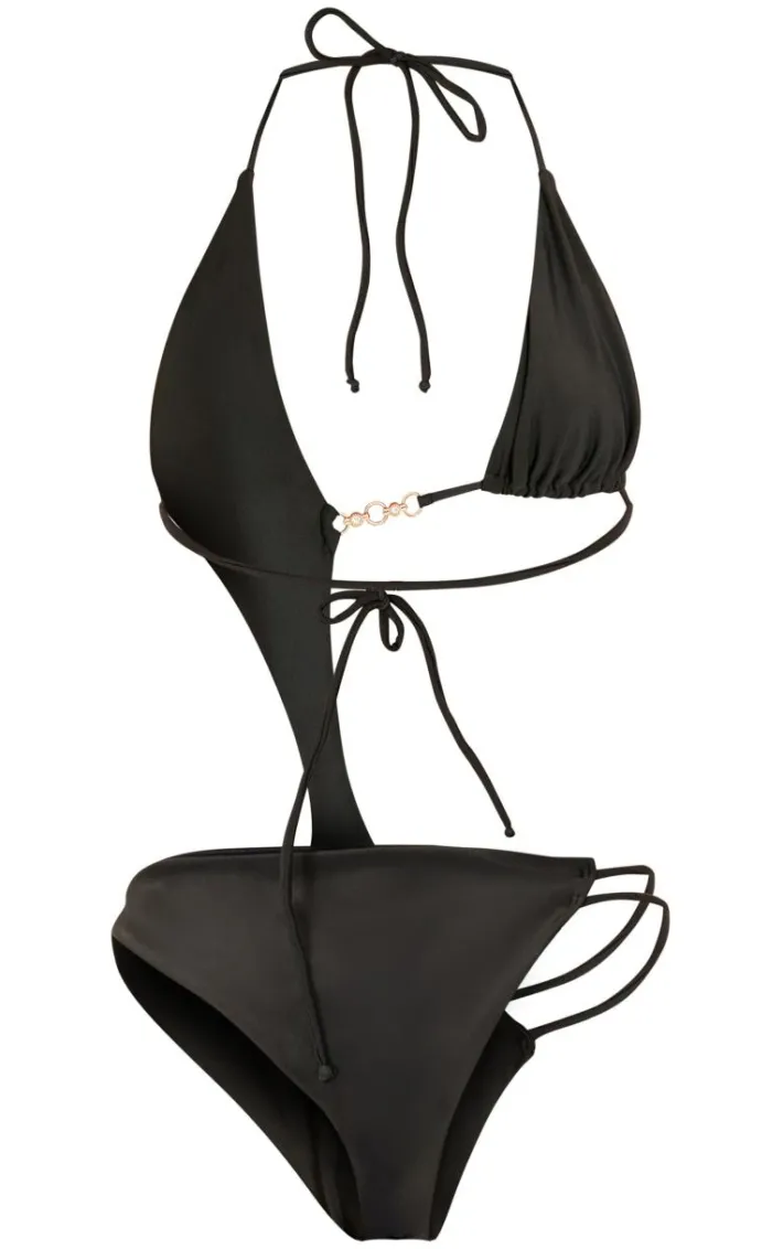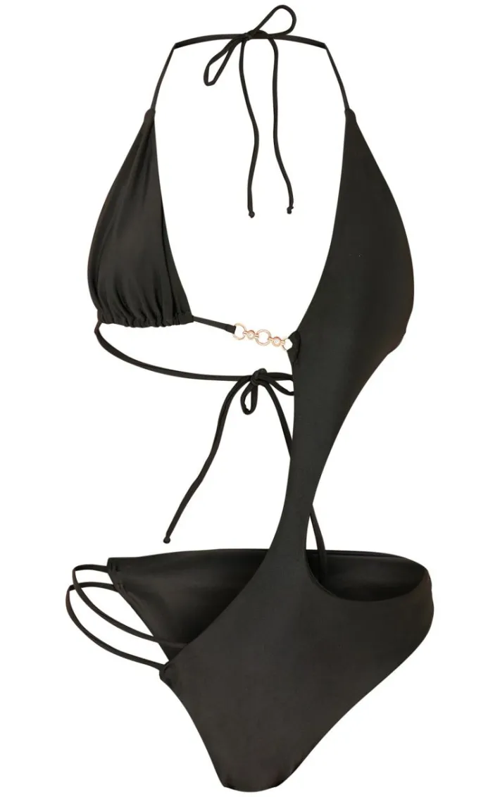 Turn up the heat in this black cut out diamante trim swimsuit. Brought to you in a black swim material with a cut out design and diamante trim detail, this swimsuit is everything you need and more. Style with your fave pool-side accessories for a statement finish that will steal all the stares. It’s a yes from us.