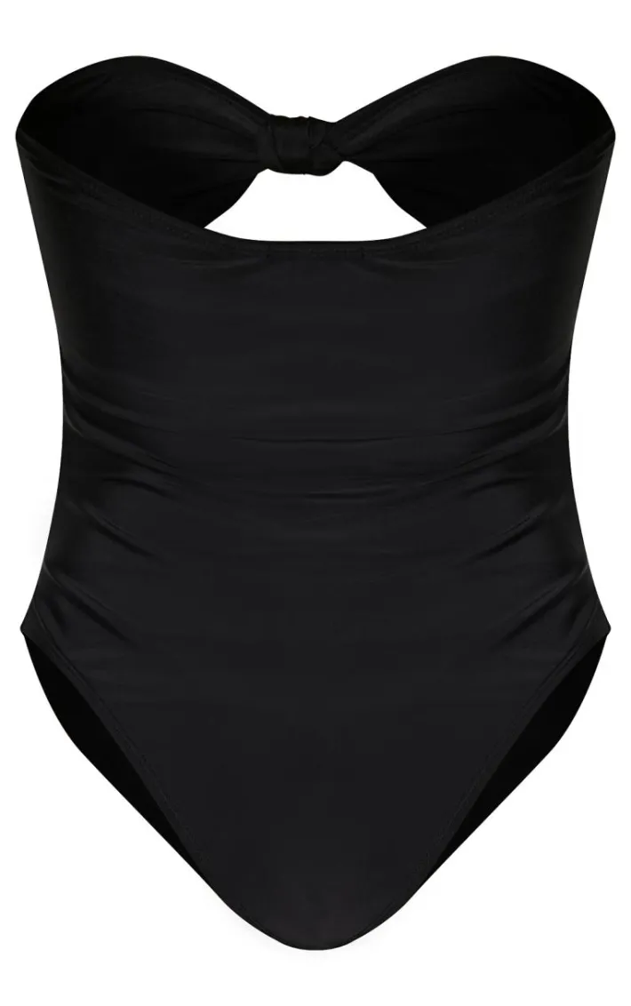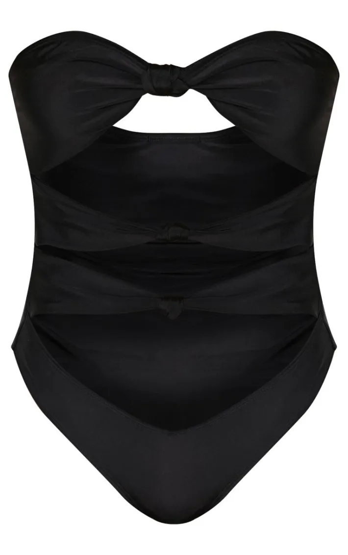 Deciding what to wear on vacation just got easier with this black cut out knot swimsuit. Brought to you in a black hue swim material with a cut out design and knot detail, this swimsuit is all the new you need. Style with simple accessories and sandals for a look like no other.