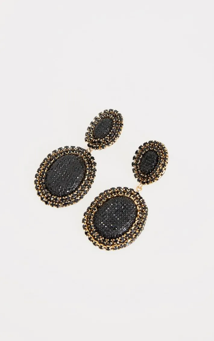 Instantly elevate your weekend look with these black diamante oversized round statement earrings. Made from a black material with a round design and diamante detailing for that extra touch of luxe, how can you say no? Style these statement earrings with a black outfit for a chic finishing touch to your look.