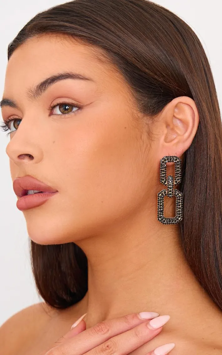 Take your outfit to new heights with these black diamante square chain link statement earrings. Brought to you in a black material with a square chain link design and diamante detailing for that extra touch of luxe, how can you resist? Style these statement earrings with your fave wardorbe pieces for a look we’re loving.