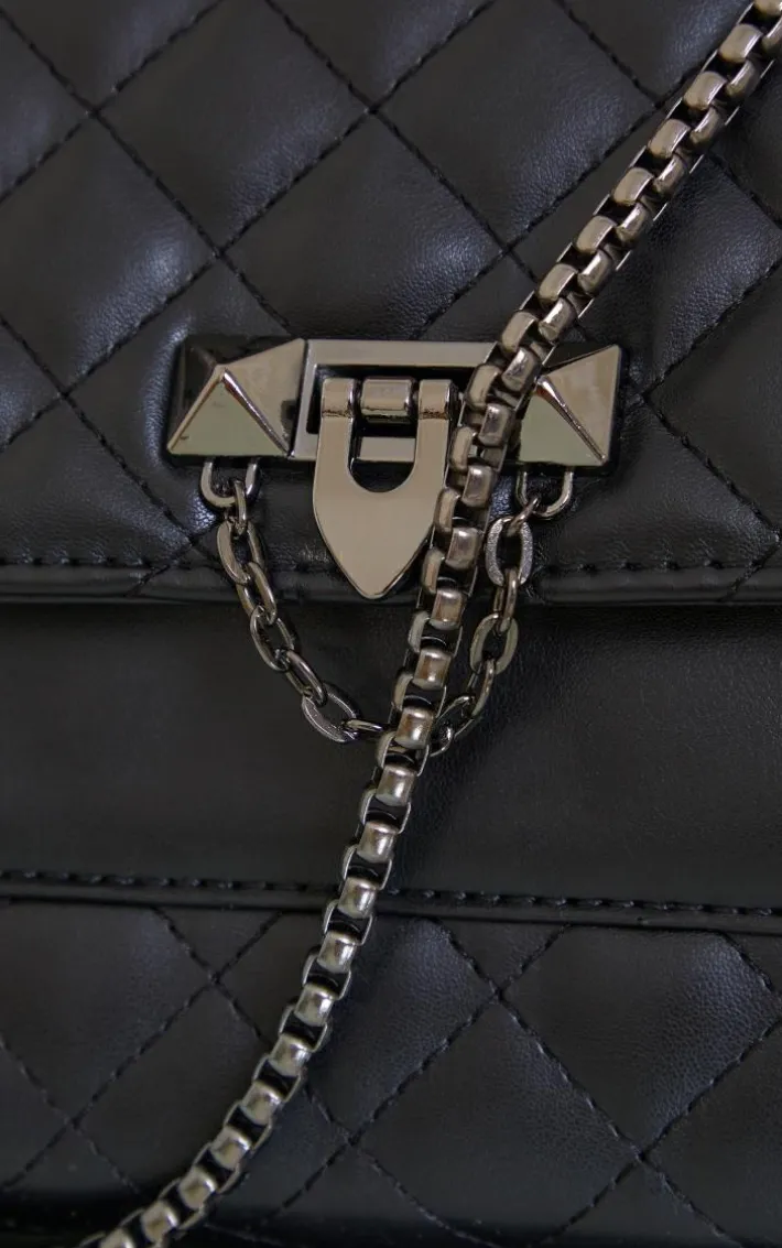 This bag is a must-have for your accessory collection. Featuring a black material with diamond quilted detail, a cross-body style strap and chain detail, what’s not to love? Team this with any outfit to elevate your look.