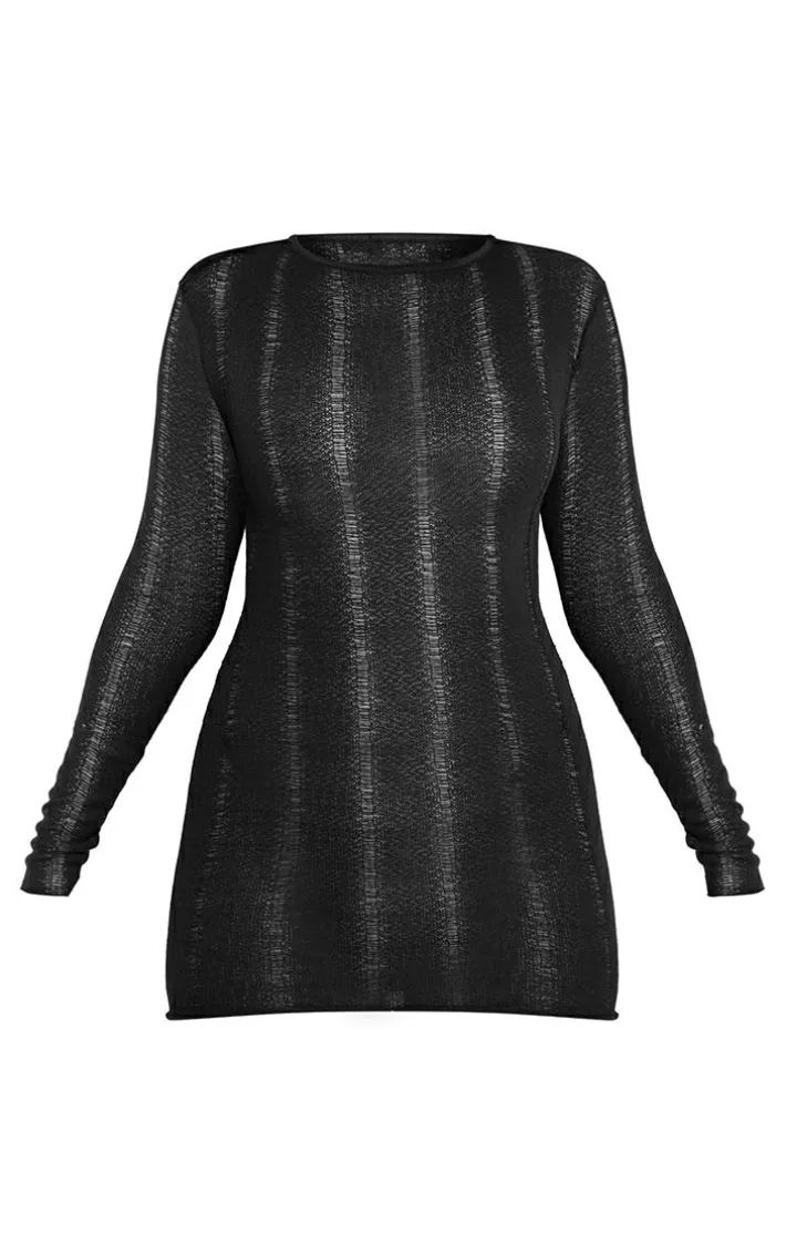 Get ready to nail new season trends with this dress. Featuring a sheer black distressed material with a backless design, long sleeves and a bodycon fit, what’s not to love? Turn your look into the ultimate statement by adding boots and accessories for finish like no other.