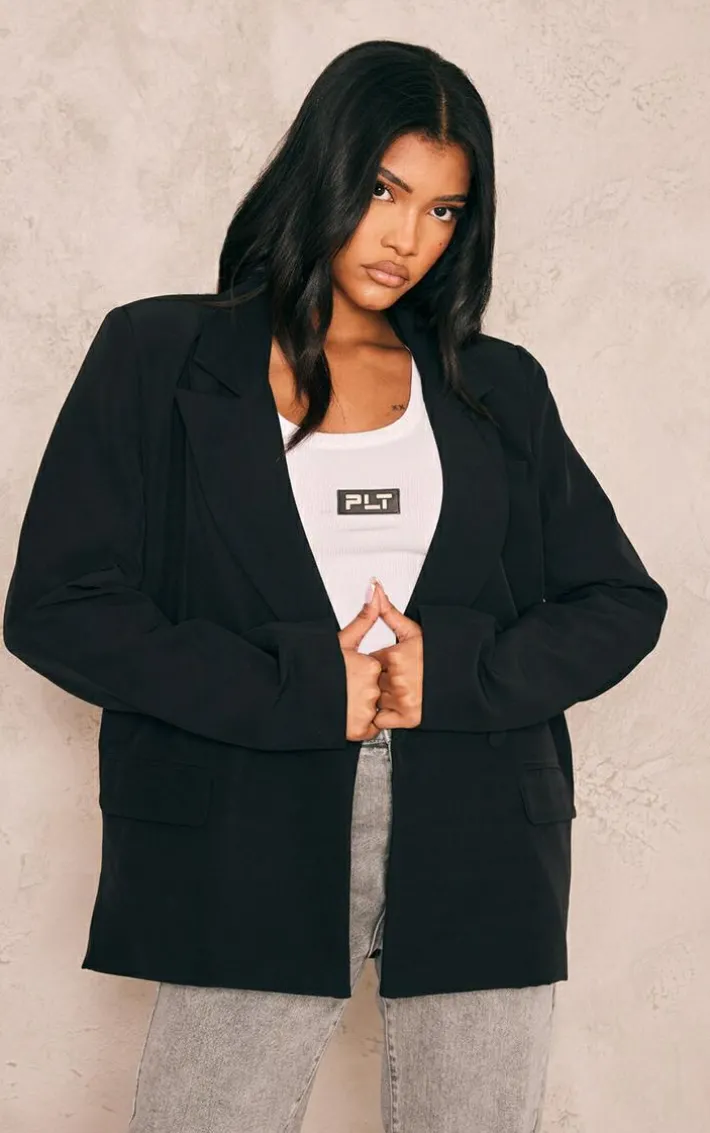 This black double breasted oversized boxy fit blazer is sure to be a staple in your new season wardrobe. Its seriously chic design and comfy oversized fit is perfect for am to pm styling. Made from a classic black hue that can be teamed seamlessly with any look and with a double breasted design, what more could you want? Wear this boxy fit blazer with a white top, split hem jeans and fresh kicks for an off-duty look we just can’t get enough of.