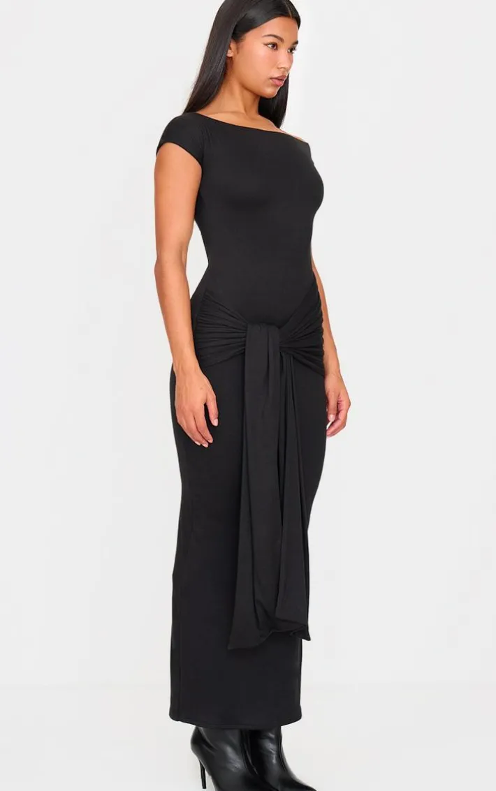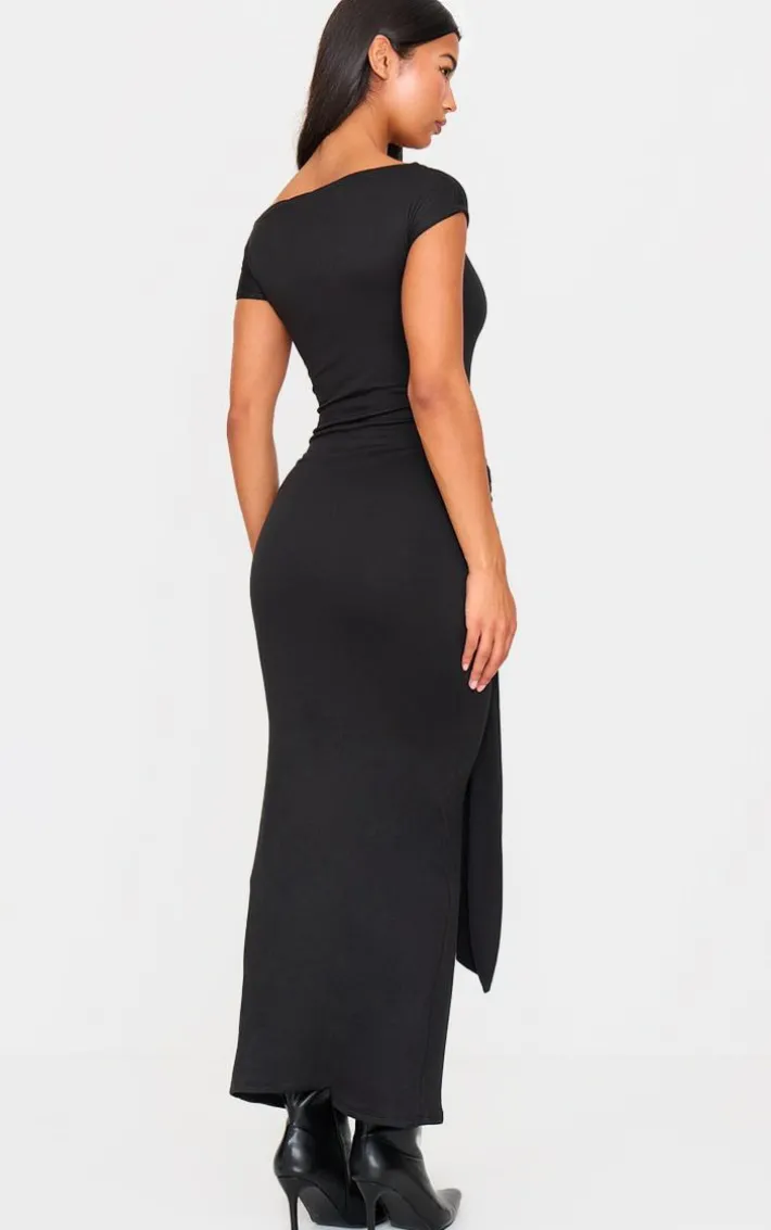 Keep it chic with this black double contour boat neck wrap maxi dress. Brought to you in a versatile black shade, with a flattering double contour design, boat neck line and wrap detail, you’ll be reaching for this whatever your weekend plans. Style with a pair of heeled boots and minimal accessories for a finish we’re all after.