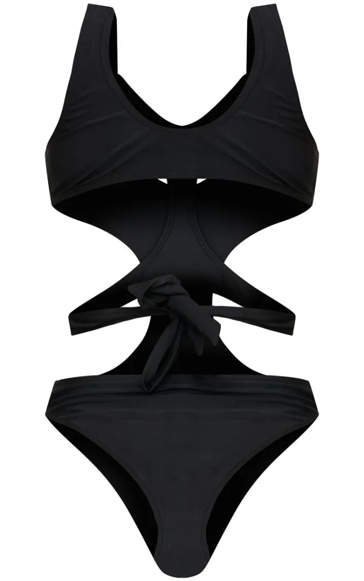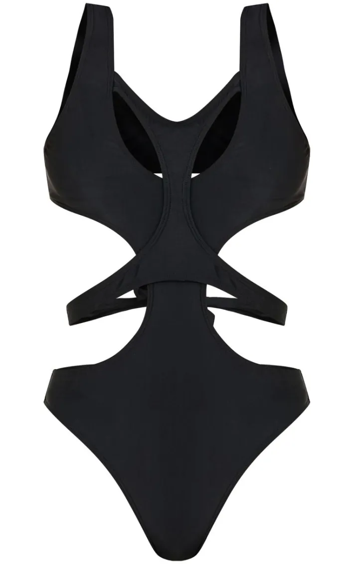 Amp up your swimwear collection with this black double layered cut out swimsuit. Brought to you in a black hue material with a double layered design and cut out detailing, how can you resist? Style this black swimsuit with gold accessories for a look that is sure to make heads turn.