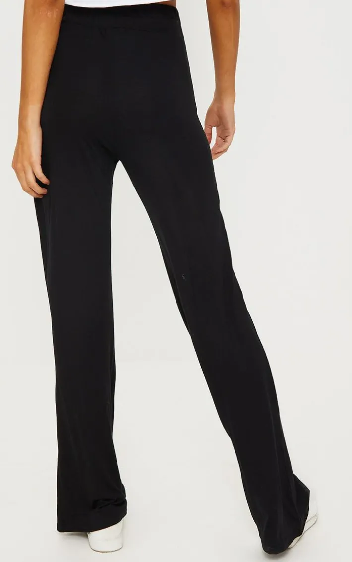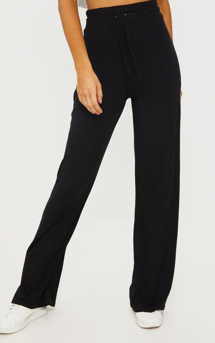 Amp up your new season wardrobe with this pair of black bottoms. Featuring a black jersey material with a wide leg design and a figure-hugging, what’s not to love? Seriously comfy and versatile, these wide leg bottoms are sure to become a staple in your everyday wardrobe. We are loving these drawstring bottoms teamed with a crop top, your go-to accessories and fresh kicks for an effortless off-duty look.