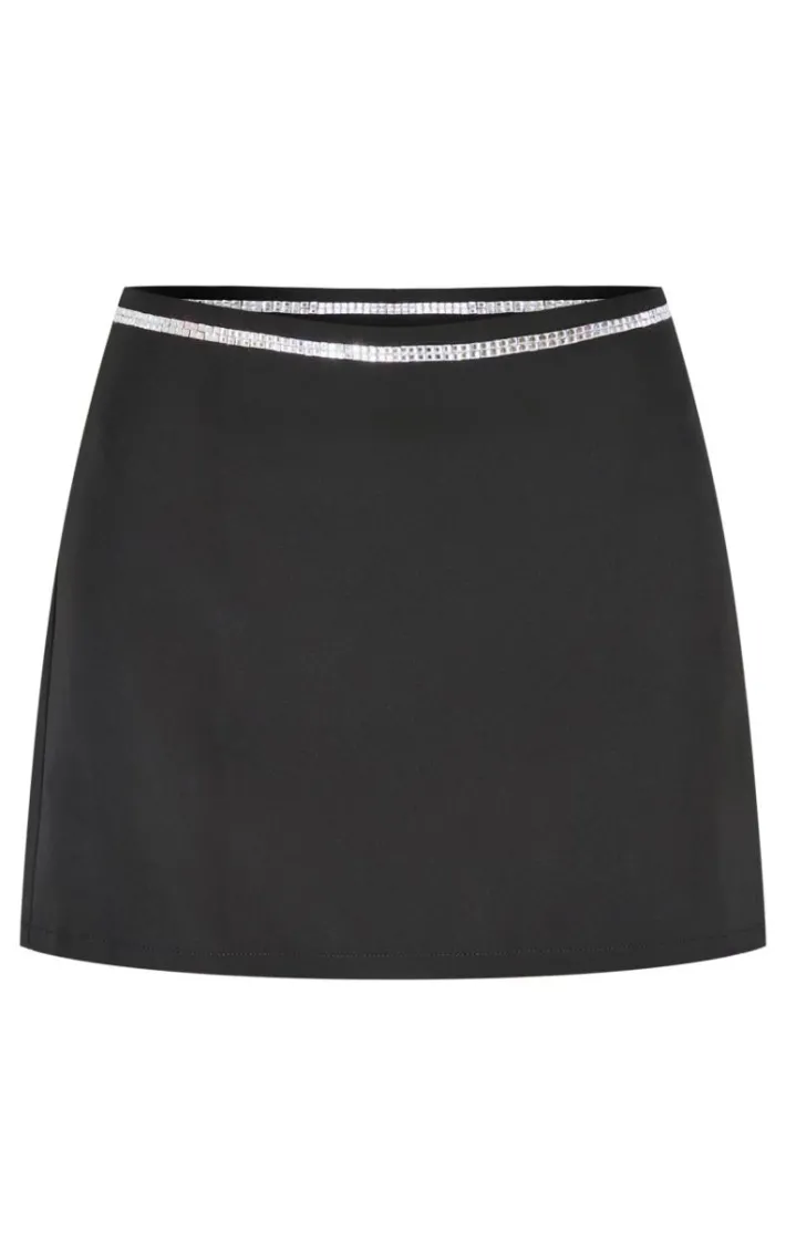 Turn heads for all the right reasons with this black embellished detail tailored mini skirt. Brought to you in a black material with an embellished detail and a tailored design, you are sure to elevate your look instantly. Team this mini skirt with a pir of heels and a crop top to finish off the look we are loving.