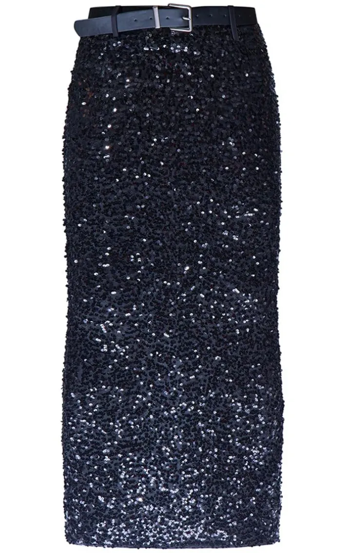 Turn up the heat on your weekend wardrobe with this black embellished sequin belt detail low rise midaxi skirt, get ready to have all eyes on you. This midaxi skirt features a black embellished sequin material with a belt detail and a low rise design, you won’t be able to resist. Pair this midaxi skirt with the matching top, clear slip-on heels and hoop earrings for a fool proof finish.