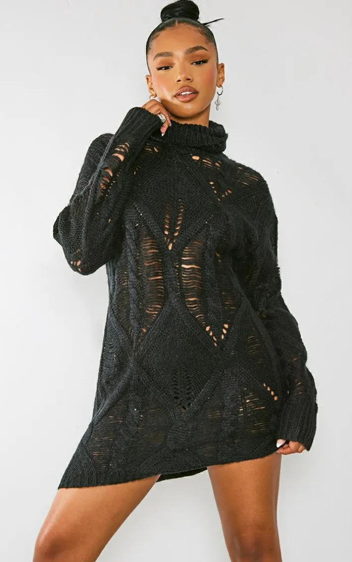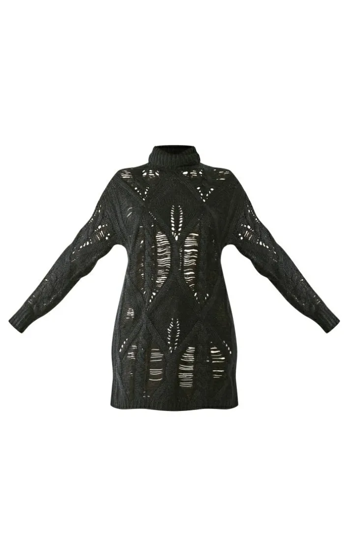 As the new season approaches it calls for a wardrobe revamp and this black extreme distressed knitted sweater dress is a must-have. With a black extreme distressed knitted material, a roll neck, and a relaxed fit, what more could you ask for? This sweater dress is at the top of our hitlist this season and we know you won’t want to miss out on adding it to your basket. Style with chunky boots and gold accessories for a look that everyone will want.