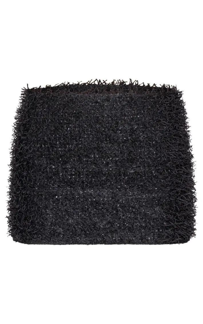 Add the finishing touch to your party look with this black eyelash tinsel detail mini skirt. Brought to you in a black eyelash tinsel fabric, you’ll be catching the light with every step. Pair this mini skirt with your favorite top, black tights and silver studs for an unmissable look. What’s not to love?