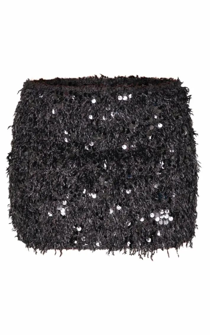 Take your look to new heights in this black faux feather sequin micro mini skirt. Brought to you in a black faux feather material with a sequin design and a micro mini length, you are sure to turn heads for all the right reasons. Team this mini skirt with a long sleeve top and a pair of knee high heeled boots to finish off the look we are loving.