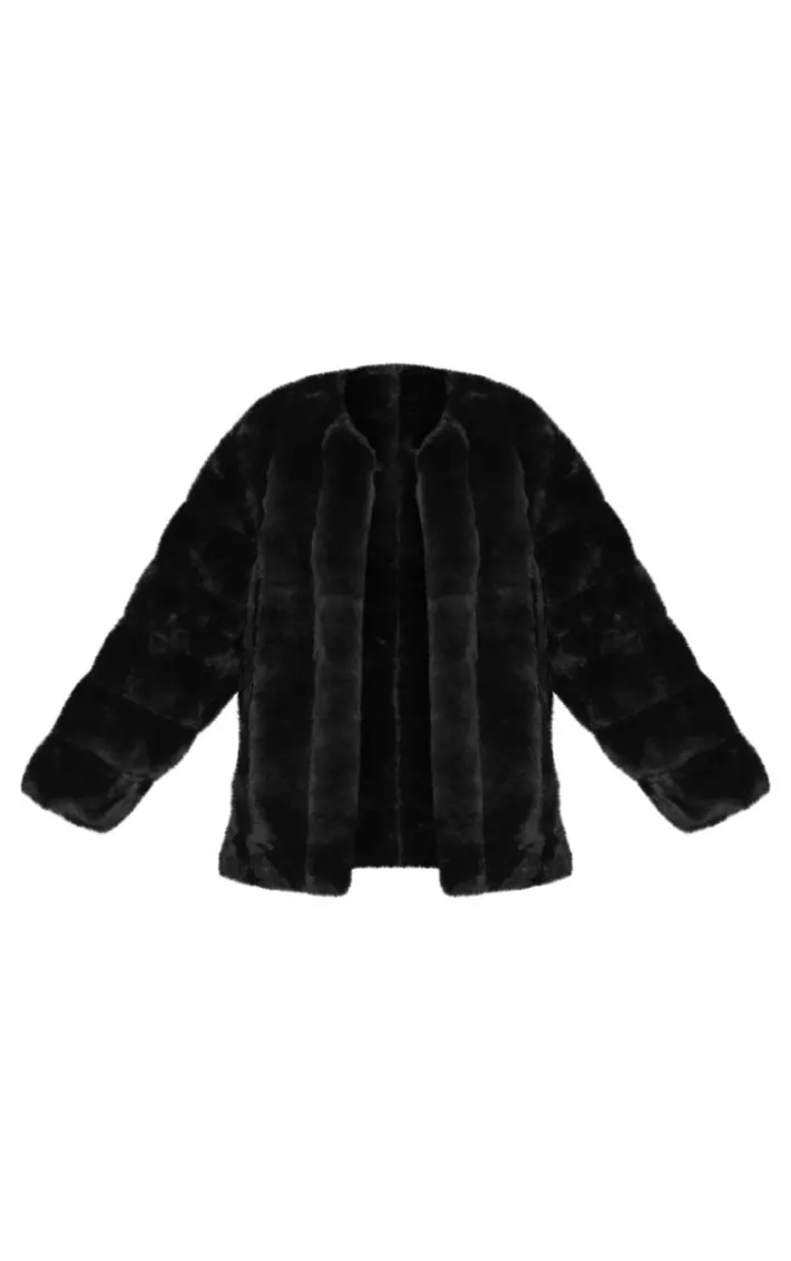 Have all eyes on you with this black faux fur bubble vertical coat. This coat is brought to you in a black faux fur material with a vertical bubble style, what’s not to love? This coat is here to banish any of your what-to-wear dilemmas. Complete the look by layering this over a white tee and black pants for a look we’re loving.