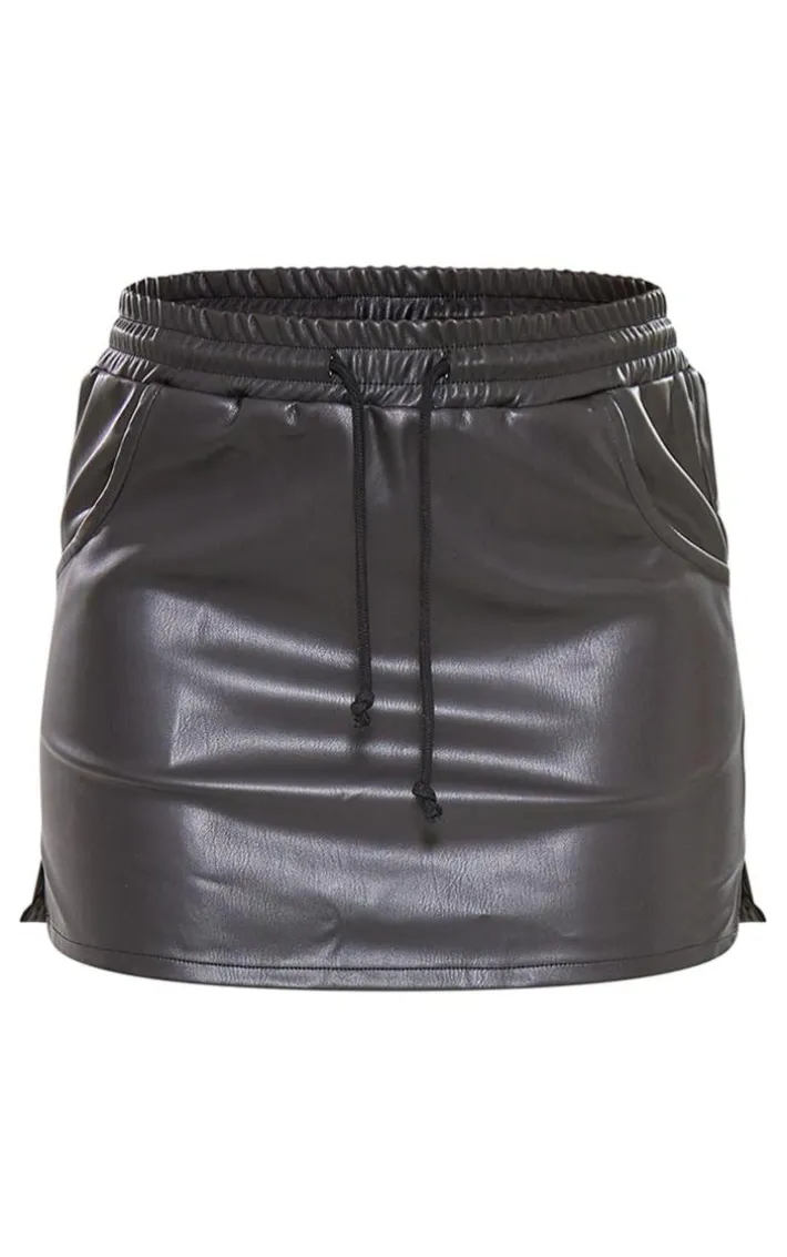 Add a little drama to your weekend wardrobe with this black faux leather elasticated waist mini skirt, you’re sure to be at the center of attention. Made using a black faux leather material with an elasticated waist and a figure-worshipping fit, you’ll be adding this mini skirt straight to your hit list. Style this mini skirt with the matching top, bold heels and a mini bag for a statement look we just can’t get enough of.
