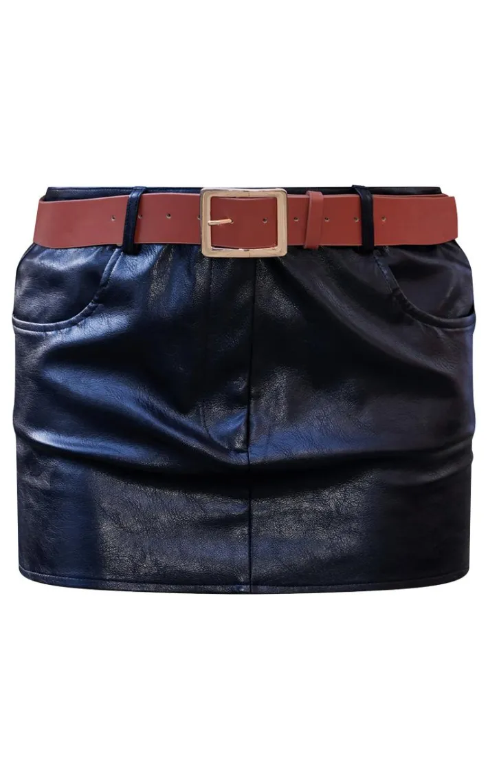 Add an edge to your weekend look with this black faux leather low rise belted mini skirt. Brought to you in a black faux leather material with a low rise design and belted detailing, how can you resist? Style this mini skirt with a black leather trench coat, fresh blouse style top and a leather look bralette moment. You’ll make heads turn wherever you go.