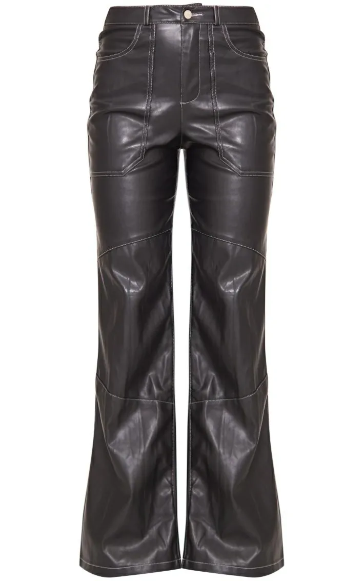 Add some seriously chic vibes to your off-duty look with these bottoms. Featuring a black faux leather material with an exposed seam design and a wide leg fit. Style with a corset top and fresh kicks for a look we’re obsessing over.