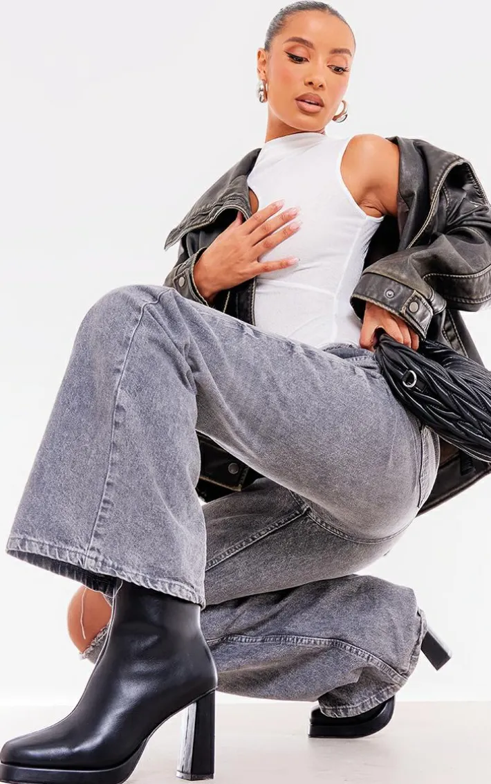 These black faux leather square toe block heeled ankle boots are the perfect versatile piece in your new season wardrobe. Brought to you in a black faux leather material with a square toe design, we are seriously obsessed. Team these heeled ankle boots with some wide leg jeans a white tee to finish off the look everyone is talking about.