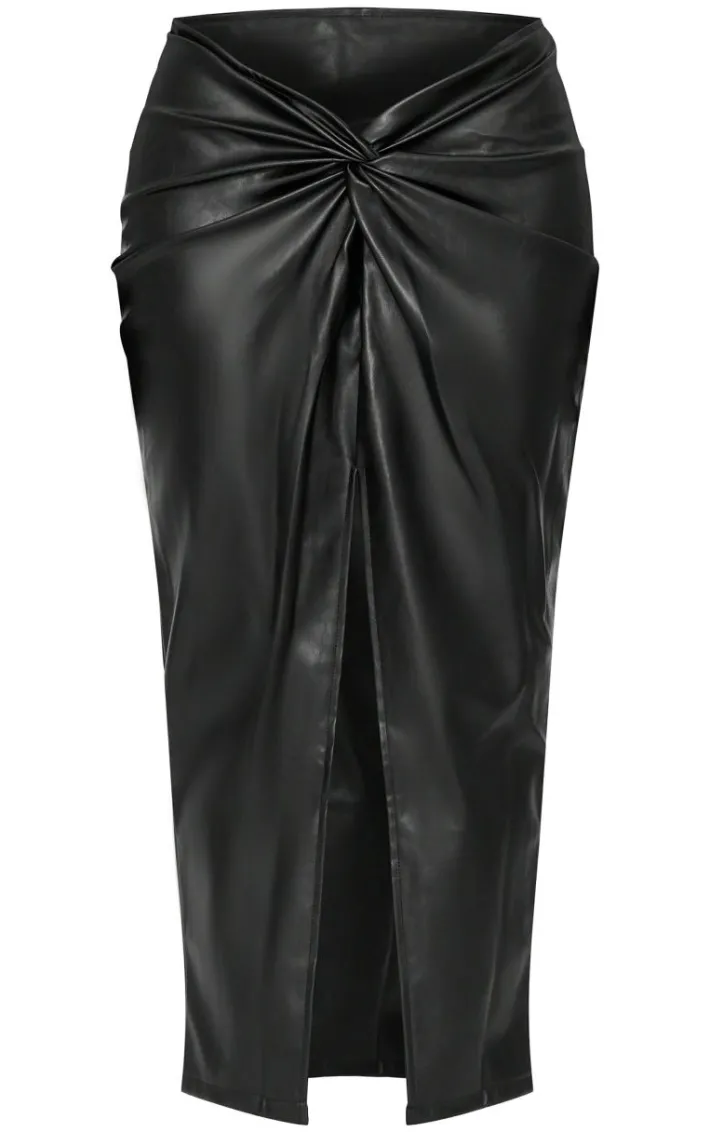 Elevate your weekend wardrobe with this next-level skirt. Featuring a black faux leather material with a twist front detail and split design, we’re obsessed. Style with a crop top and heels for a seriously chic finish.