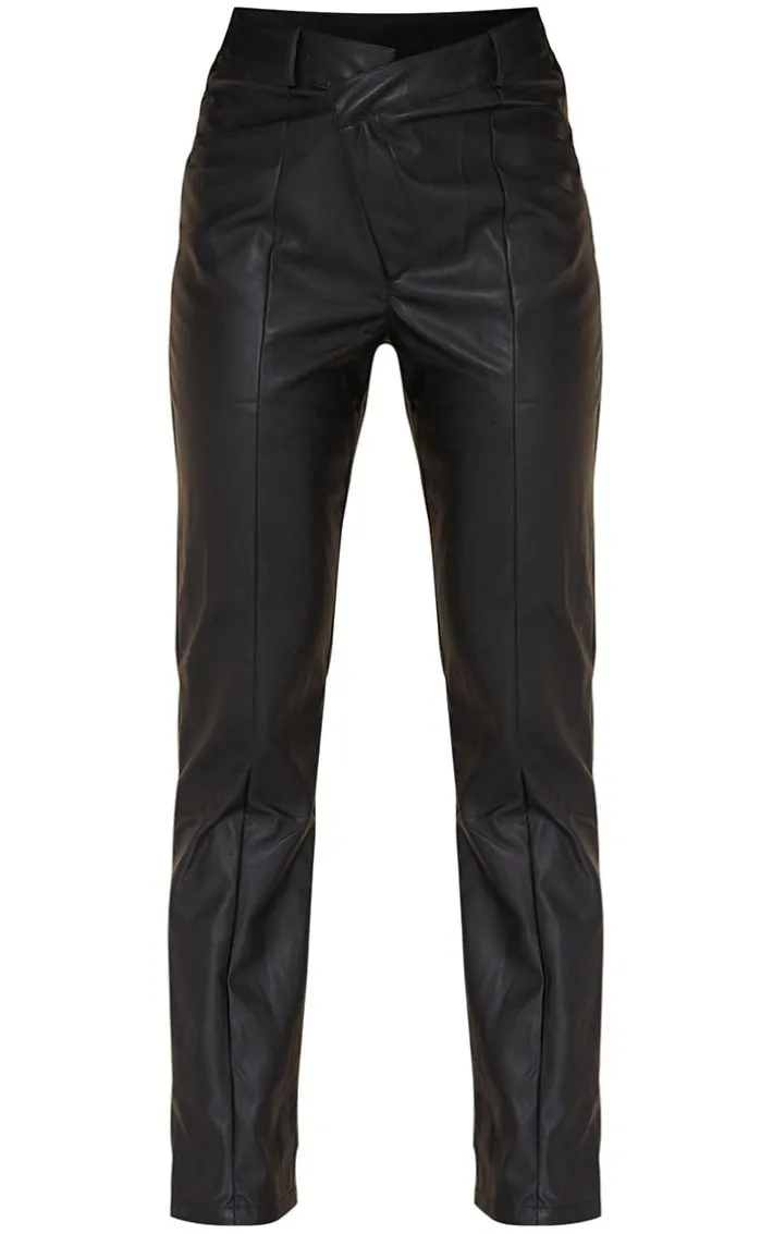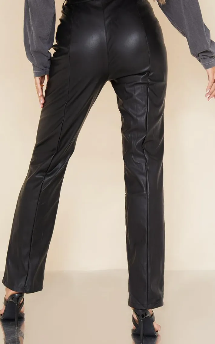 These bottoms are sure to take your look that extra mile doll. Featuring a black faux leather material with a V front design and a straight leg fit. Team with an oversized sweater and slip-on heels for a simple but chic look.
