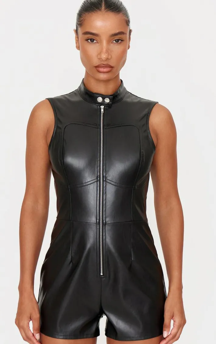 You are guaranteed to make a statement in this black faux leather zip up sleeveless romper. Brought to you in a black faux leather material with a sleeveless design and zip up detailing, how can you resist? Style this faux leather romper with heels and sunglasses for a look that will add an edge to your weekend vibe.