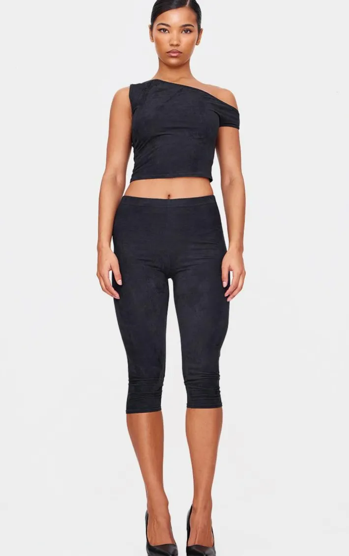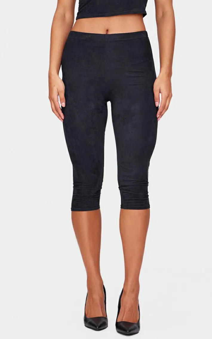 Make sure your weekend look stays on trend in these black faux suede capri pants. Brought to you in a black faux suede material with a figure-flattering fit, how can you resist? Style these black capri pants with the matching top and heels for a look that will have all eyes on you.