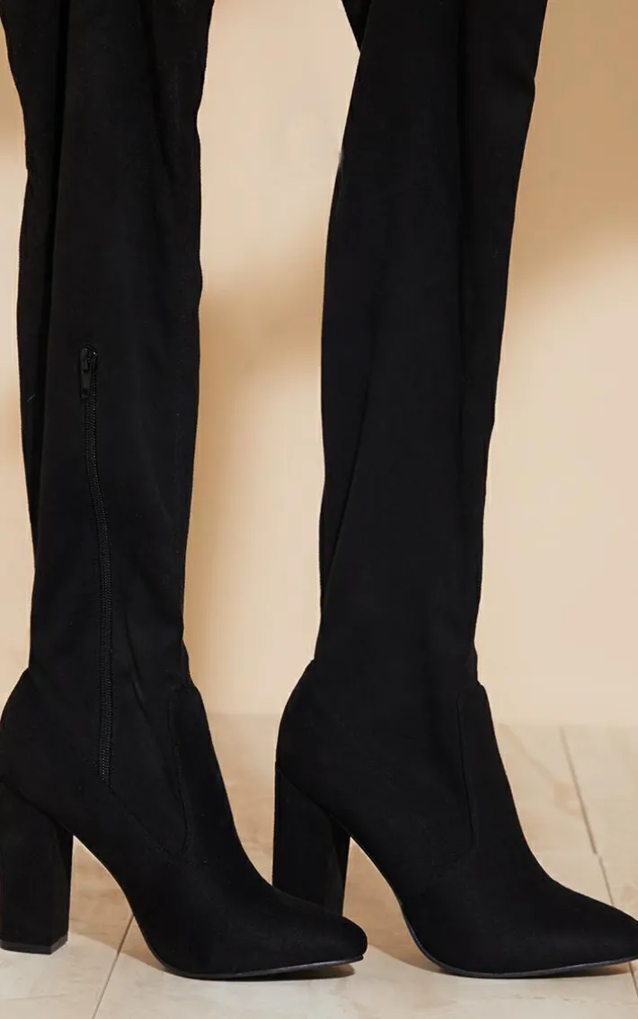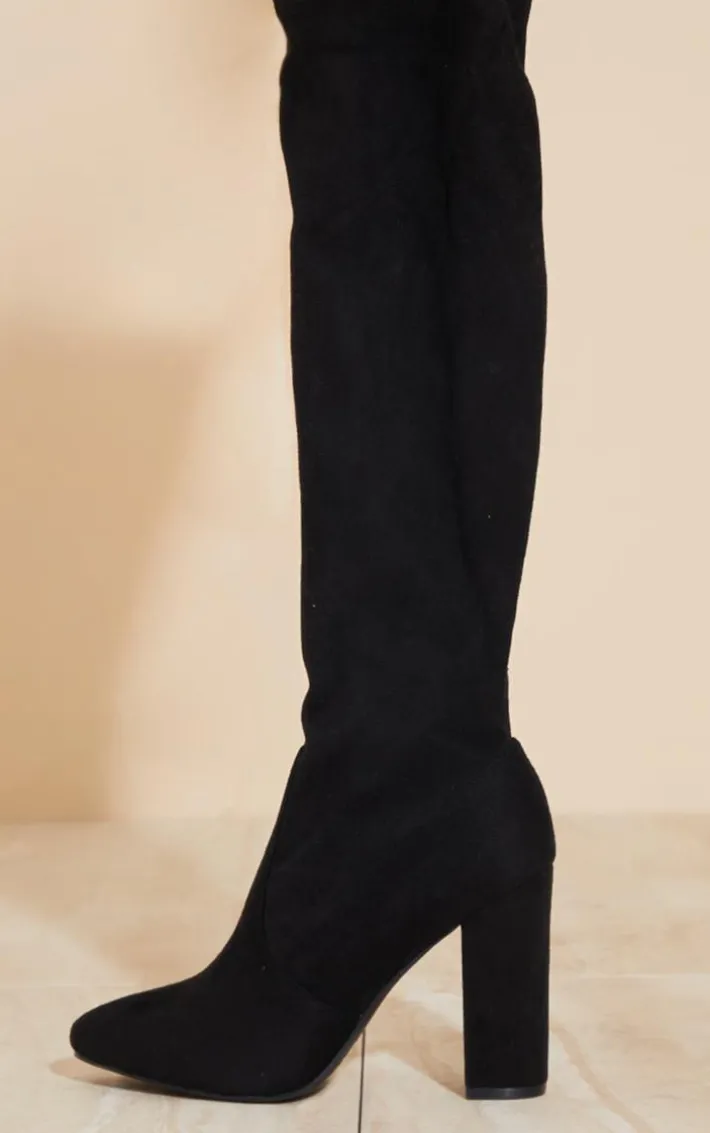 These fierce over the knee boots are sure to elevate any outfit this season. Featuring a black faux suede material with a round toe design, block heel and over the knee fit, what’s not to love? Style with your existing wardrobe pieces for a chic look that can be dressed up or down.