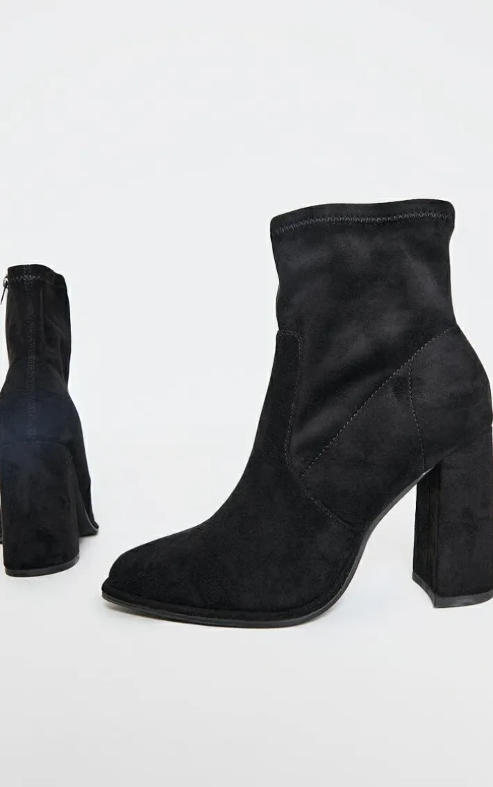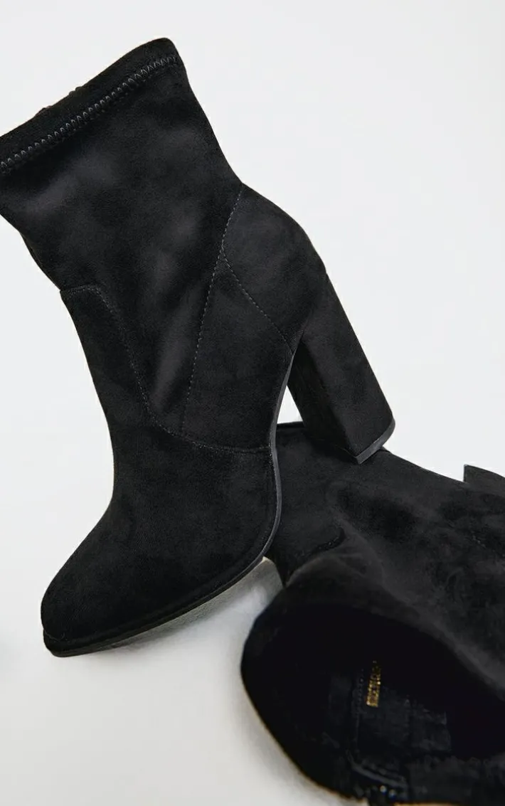 These black faux suede round toe high block stiletto heeled boots are about to become your new season staple. Made from a black faux suede material with a round toe design and high block heels, how can you resist? Style these heeled boots with your outfit of the day for the perfect finishing touch.