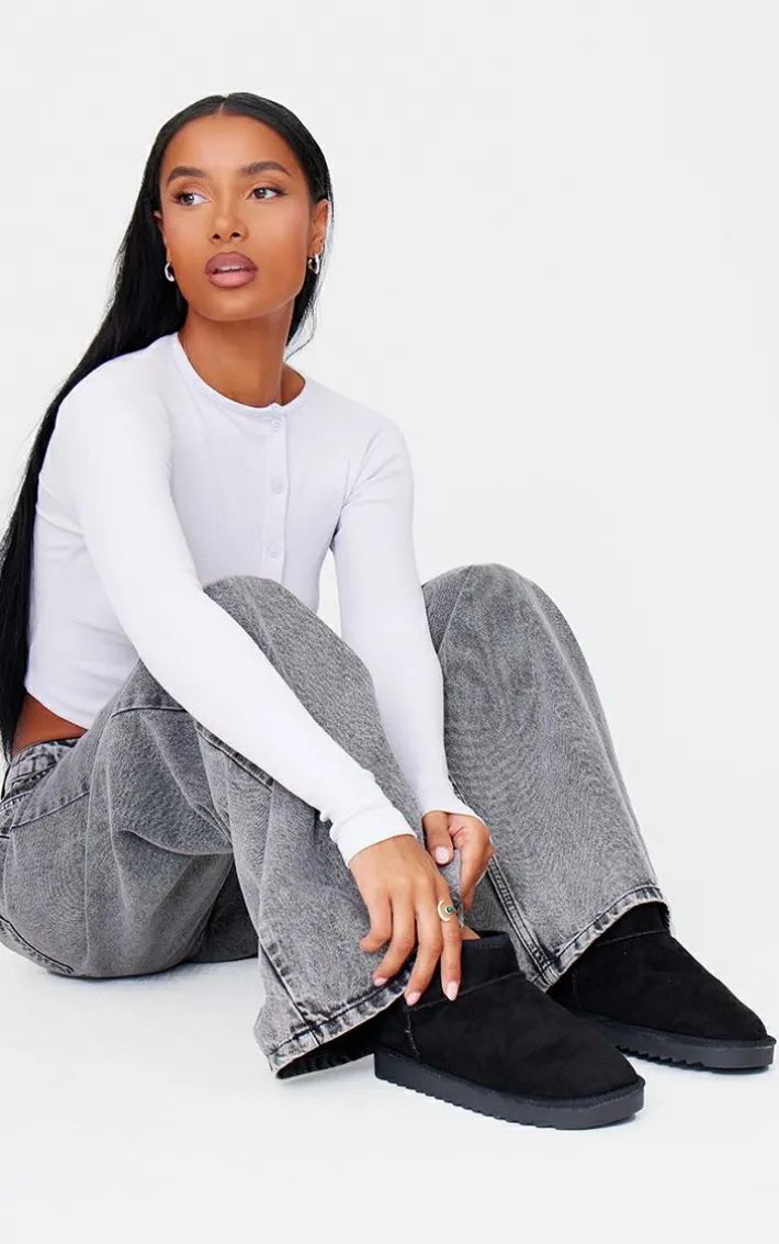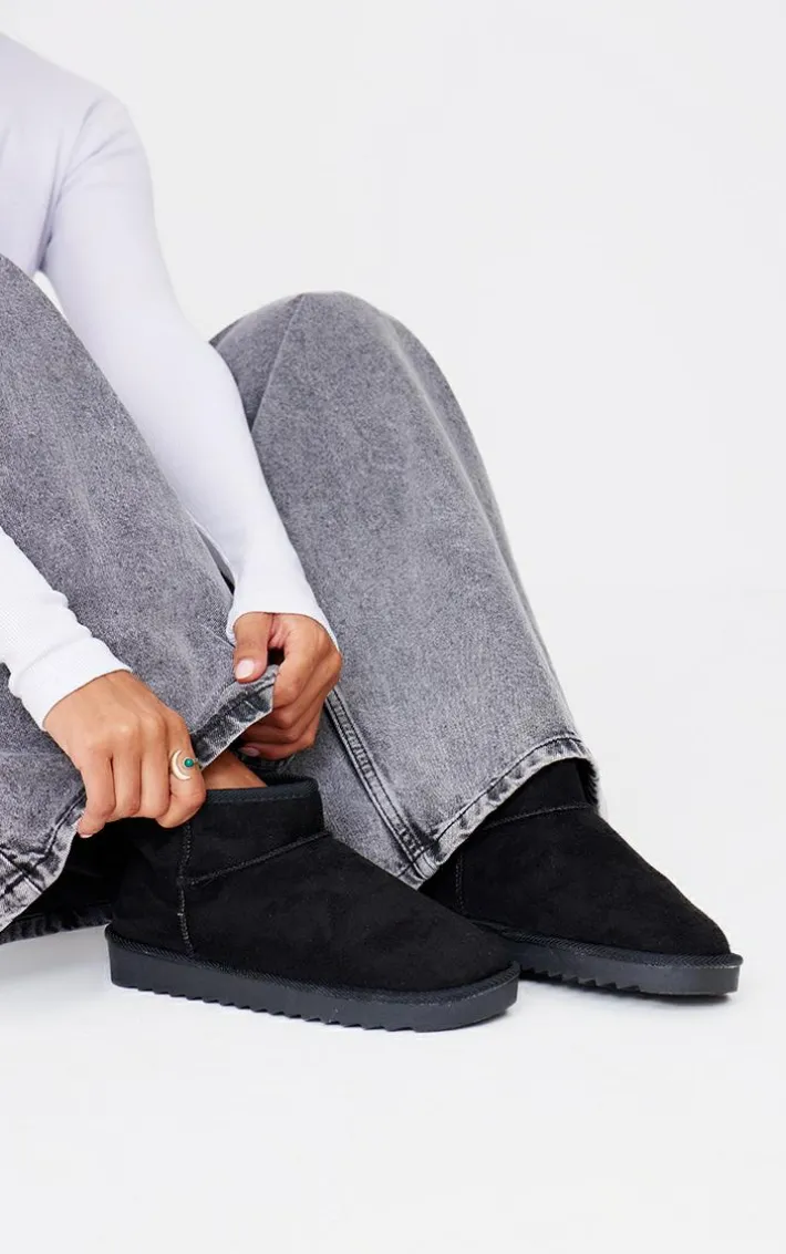 Step into the new season in style with these black faux suede round toe rigged sole ankle boots. Brought to you in a black faux suede material with a round toe design and a rigged sole, what more could you want? These ankle boots are sure to keep you cosy all season long. Simply add to your outfit of the day for the perfect finishing touch.