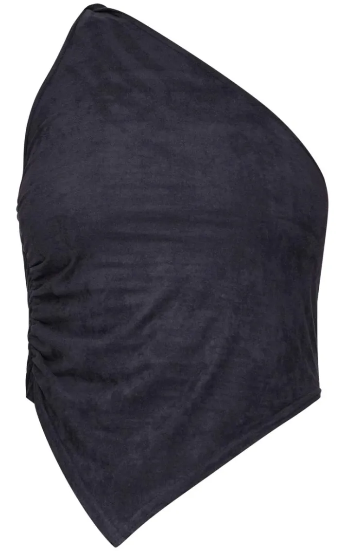 Make weekend styling look effortless with this black faux suede twist detail one shoulder top. Brought to you in a black faux suede material with a one shoulder design and twist detailing, what’s not to love? Pair this faux suede top with the matching skirt and heels for a look that is guaranteed to have all eyes on you.