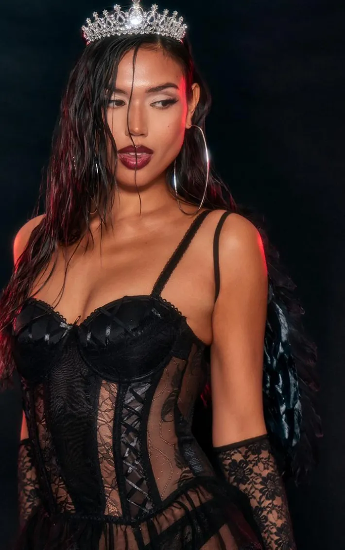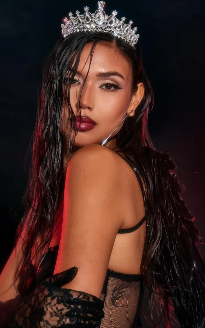 When the weekend calls, so does this black feather mini wings and tiara accessories set. This mini wings are brought to you in a black feather material with a mini wing design, while the tiara has a diamante detailing, what more could you want? This accessories set is all you need to feel seriously chic. Team with your go-to look to turn heads for all the right reasons.