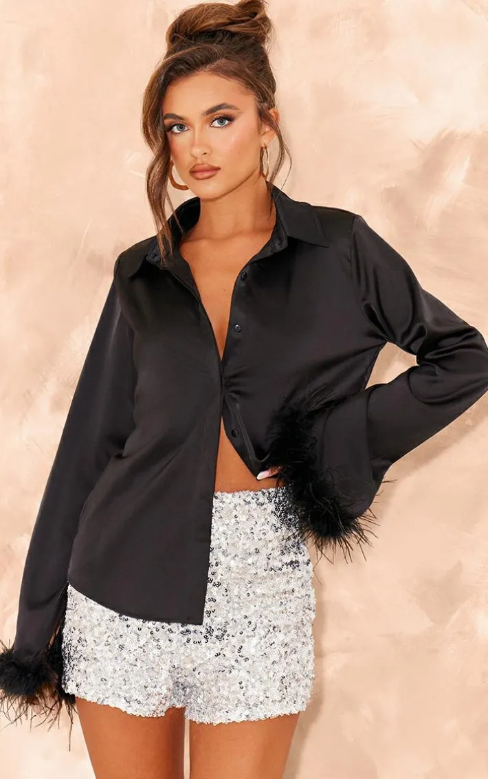 Stand out from the crowd with this shirt. Featuring a black premium material with feather trim detailing, we’re obsessed. Pair this with matching shorts and heels for a look that will have the spotlight on you.