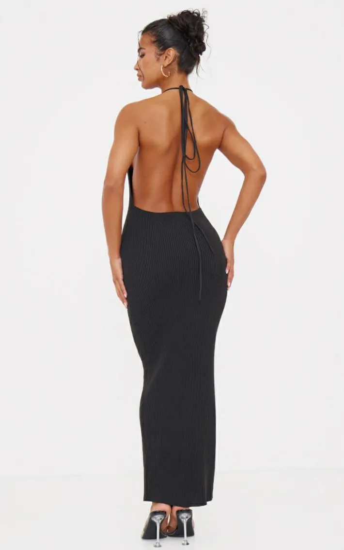 Look all kinds of chic in this black fine knit halterneck maxi dress. Brought to you in a black hue fine knit material with a halterneck design, this maxi dress is a must have. Style with slip on heels and gold accessories for a look like no other. It’s a yes from us.