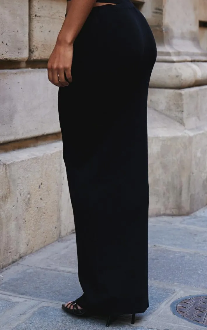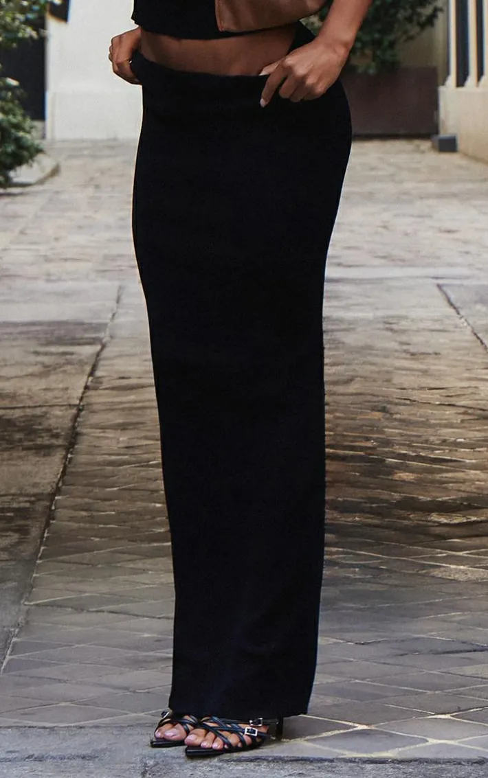 Take on your weekend the right way with this black fine knit maxi skirt. Made from a black fine knit material, this is everything we’re loving and more. With its maxi length, this skirt is sure to hug you in all the right places. To complete the look style this seamlessly with your fave accessories for a look that will secure you all the likes.