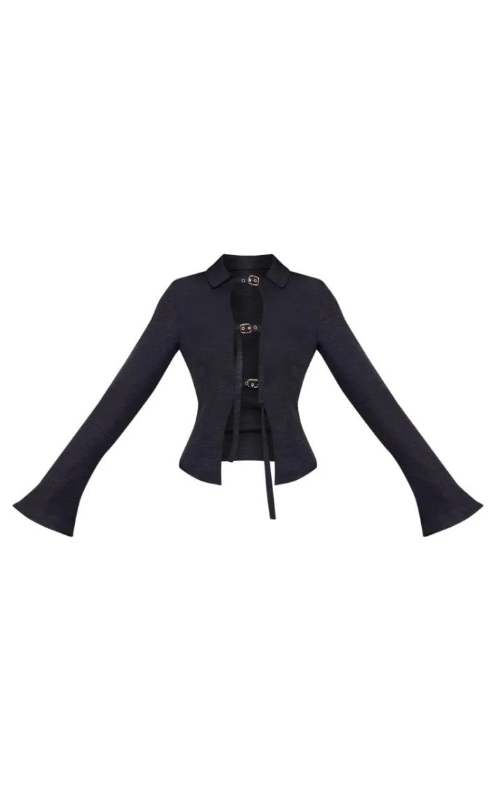 Your new season update is here with this black fittedbuckle detail shirt. Brought to you in a black material with a fitted design and a buckle front detail, it’s here to add all the edge to your collection. Team with some jeans and your go-to accessories for a fool proof finish we are loving.