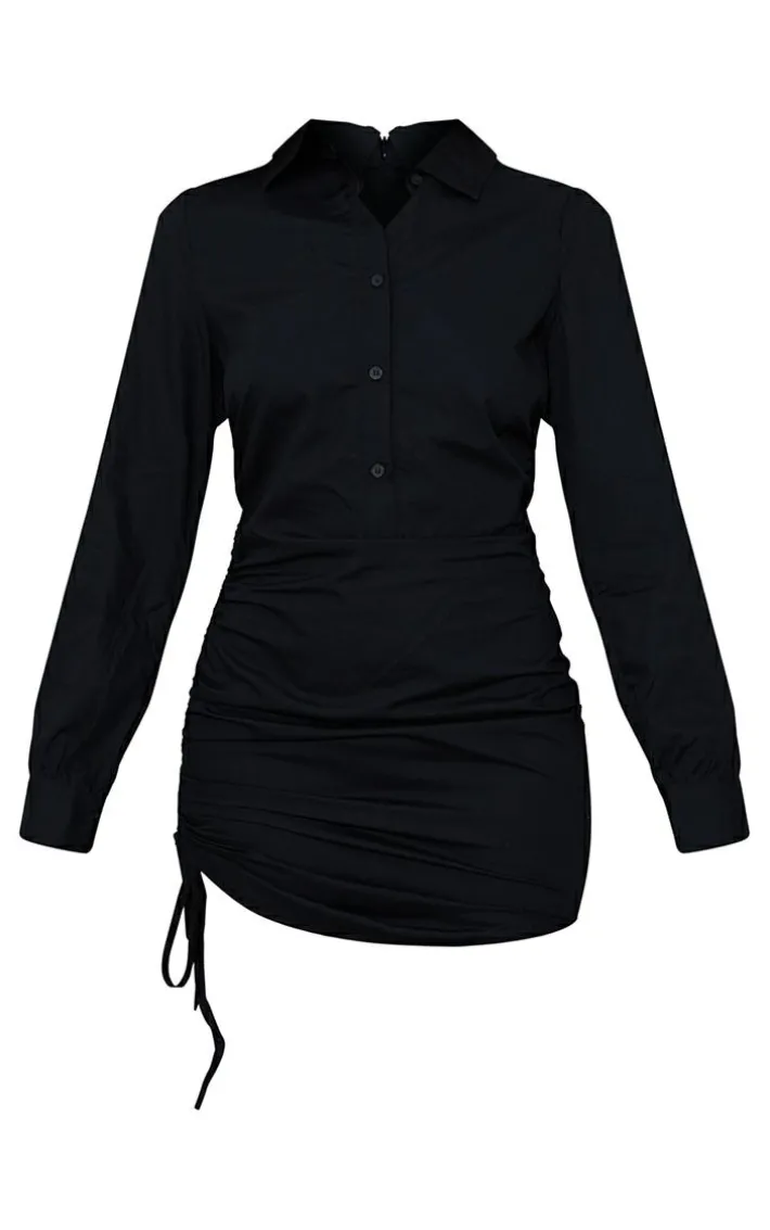 this shirt dress is perfect for your new season look. Featuring a black material with ruched detailing and a fitted design, what’s not to love? Wear with ankle boots and simple accessories for a style we are obsessed with.