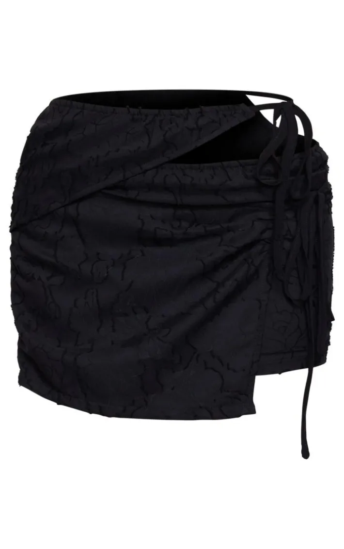 We’re in love with this black floral applique cut out wrap over micro mini skirt for your glam weekend ‘fit. Its black hue material is seriously chic and its floral applique detail adds a delicate touch. This micro mini skirt also features cut-out detail and a wrap over design which gives you a super flattering fit. Take your look to the next level with the matching top, clear heels, and gold accessories.