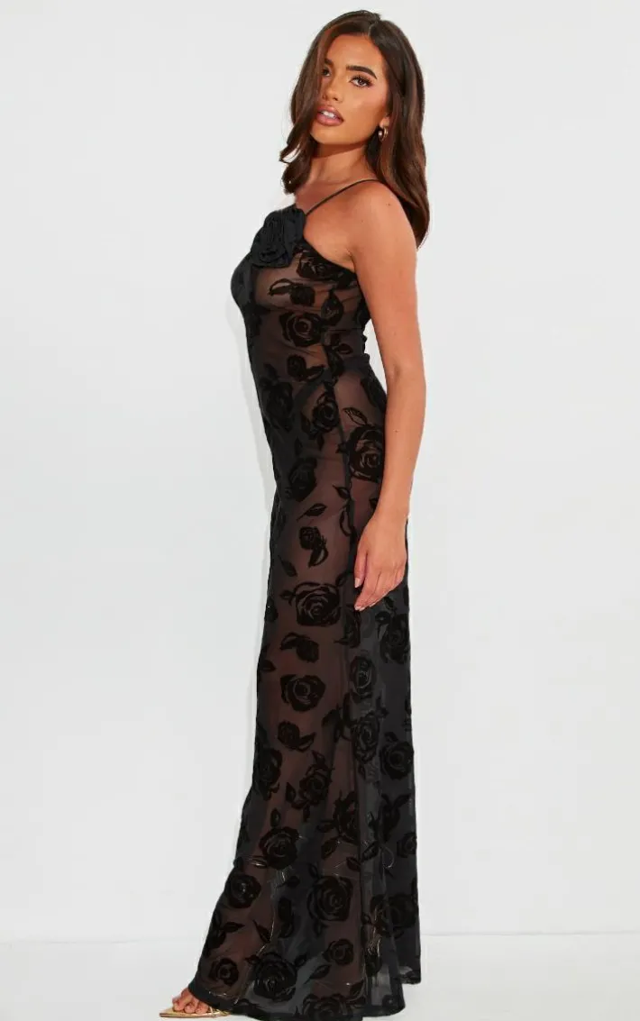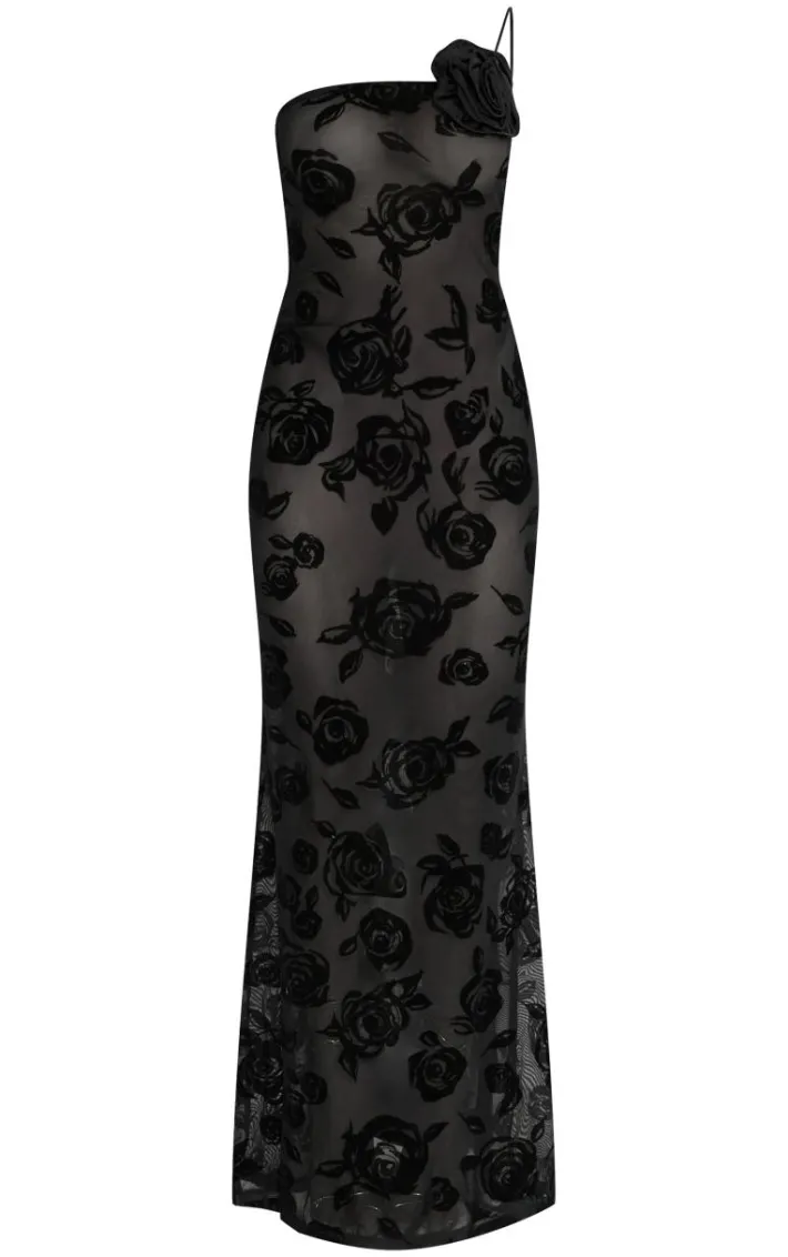 Steal all the stares with this black floral mesh one shoulder maxi dress. Brought to you in a black floral mesh material with a one shoulder design, this maxi dress is calling your name. Style with gold heels and your fave gold hoops for a look that won’t miss this season. It’s a yes from us.