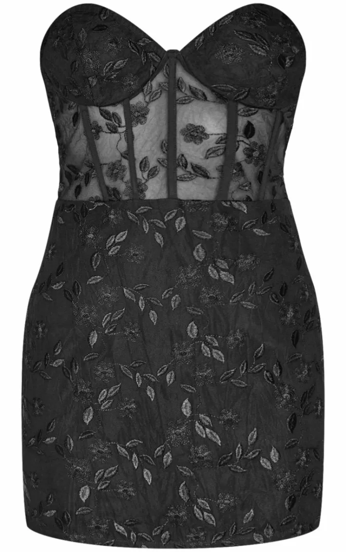 This black floral mesh overlay corset mini dress is a must have in your weekend collection. Brought to you in a chic black hue, with a floral mesh overlay material and flattering corset style, what’s not to love? Style with a pair of court heels and simple accessories for a look suitable for any occasion.