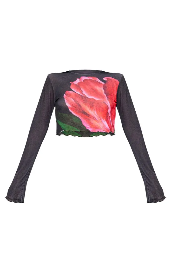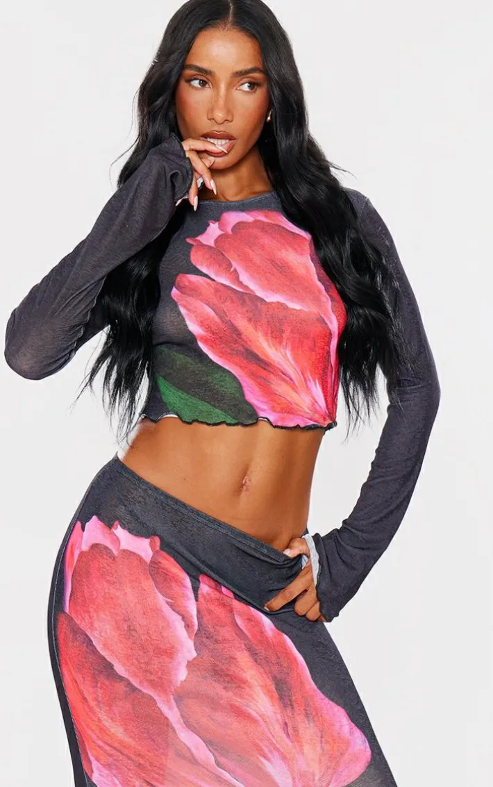 Inject some dreamy prints into your new season look with this black floral print long sleeve top. Brought to you in a black hue material with a statement floral print design, long sleeves and a cropped fit, how can you resist? Pair this top with the matching skirt, heels and gold accessories for a look that is sure to make you stand out from the rest.