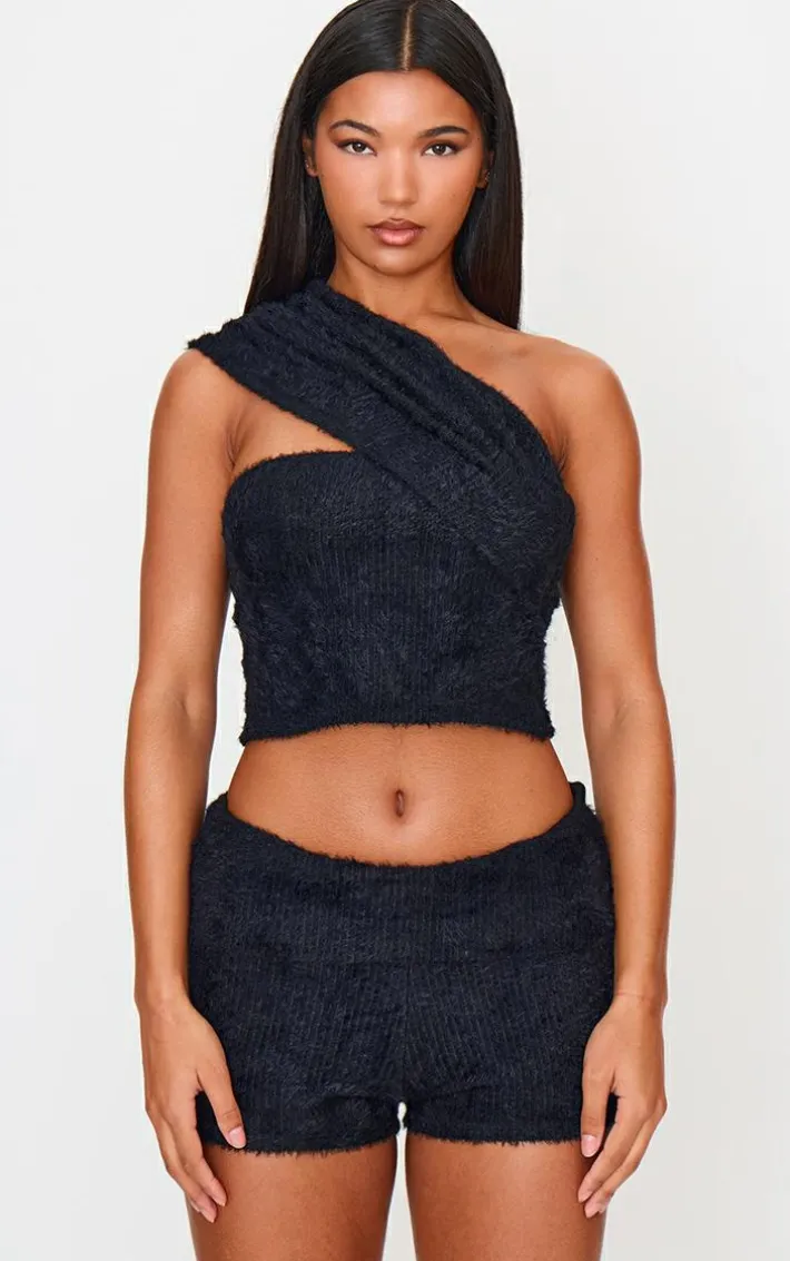Have hearts racing this season with these black fluffy textured one fold over hot pants. Brought to you in a black fluffy textured material, with a fold over design, giving you a flattering fit that will have you feeling fiercely feminine no matter what the occasion. Keep the look effortlessly chic by pairing these hot pants with the matching top and your fave accessories to set trends this season and beyond.