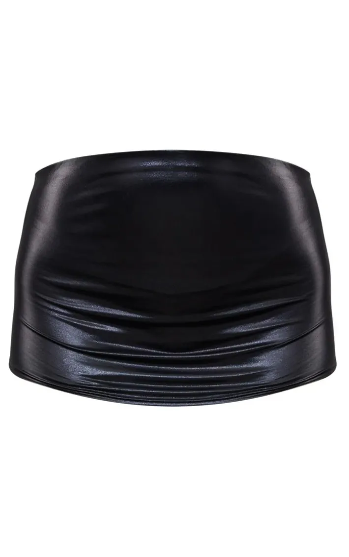 This mini skirt is sure to take your weekend look from 0-100. Featuring a black foil material with a low rise and a mini length, we’re obsessed, Team with a white satin shirt, high heels and gold accessories for a flawless finish.