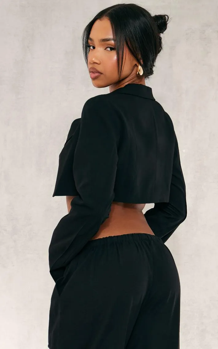 Keep it chic with this black front panel detail cropped blazer. Brought to you in a black material with a front panel detail that is sure to have you feeling seriously chic all season long. Its cropped length brings all the edge to your outfit of the day. Team with some wide leg pants and a pair of sneakers for a look we are obsessing over.