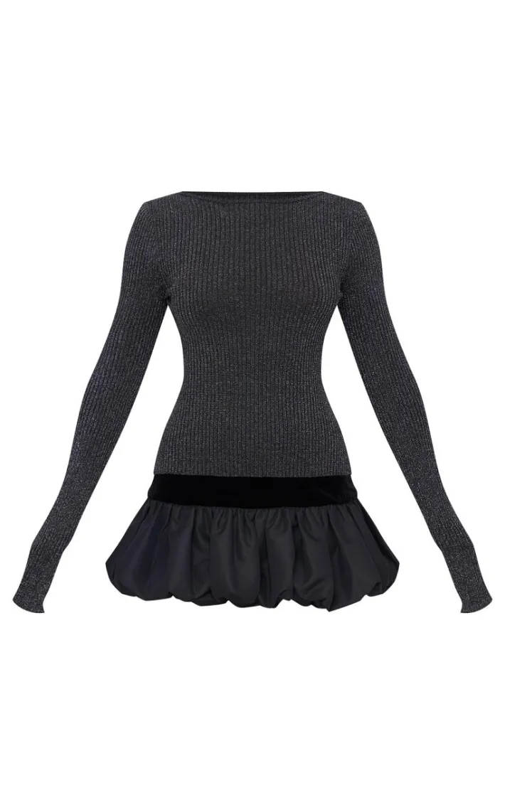 Channel all the glam vibes this weekend with this black glitter knitted open-back long-sleeve top. Brought to you in a black glitter knitted material with an open back design and a figure-flattering fit, how could you not be in love? Whether you’re getting ready for party season or just want to inject some extra sparkle into your weekend ‘fit you need this top in your wardrobe. Shop the look and pair it with the matching mini skirt, silver accessories and court heels for a flawless finish.