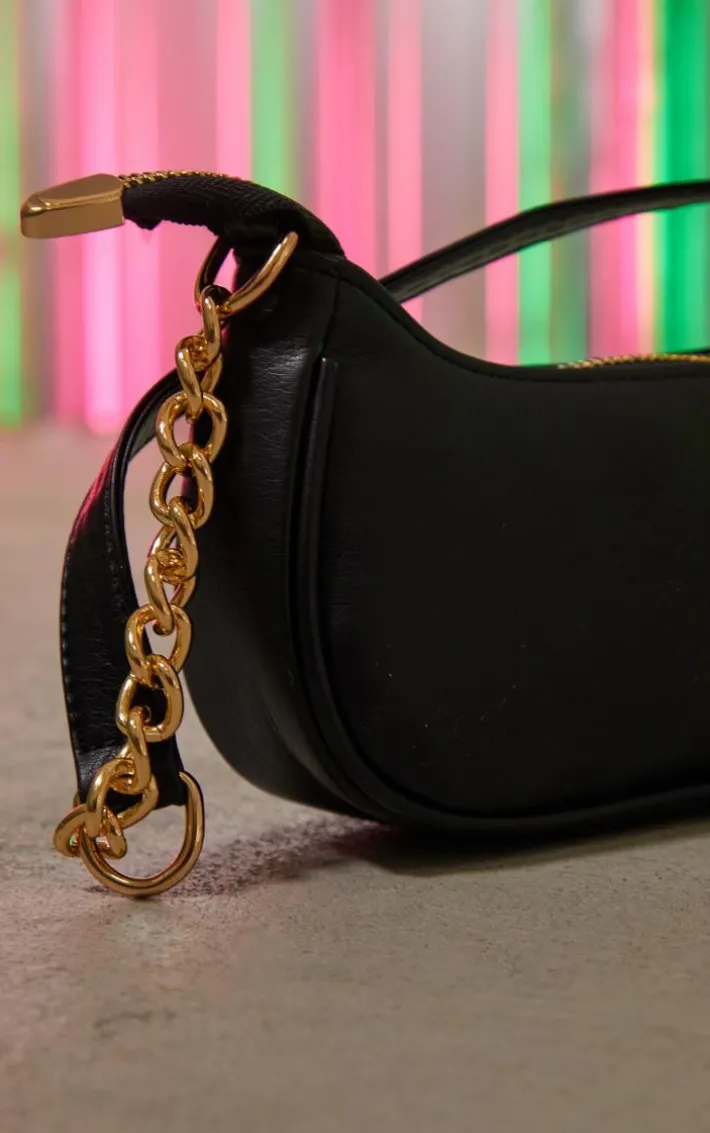 Every needs the perfect bag to finish your outfit and this one is a must. Featuring a black material with a chain detail on the strap and a zip fastening, we are obsessed. Simply add this to any look.