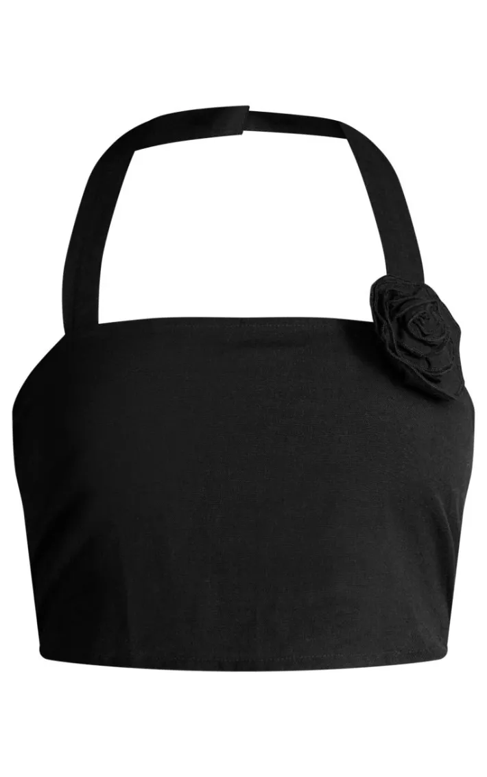 Get ready to look all kinds of glam in this black haltrneck rose applique faux linen top. Brought to you n a black faux linen material with a halterneck design androse applique detailing, how can you say no? Style this halterneck top with your fave bottoms and statement gold accessories for a look that is sure to have all eyes on you.