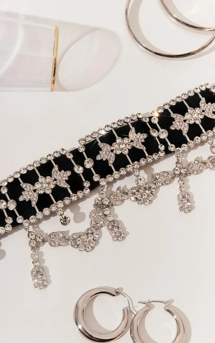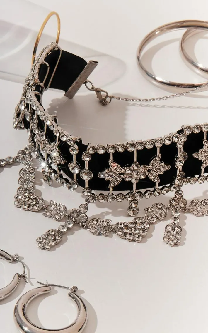 Bring all the attitude to your new season wardrobe with this black heavy embellished statement choker, it’s giving drama. This choker features a black material with a heavy embellished design and a statement style, get ready to steal all the stares. Pair this choker with your fave outfit of the day for a look everyone will be asking about.