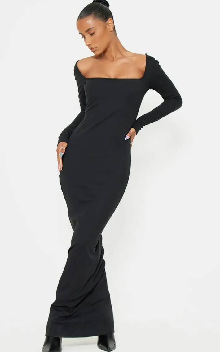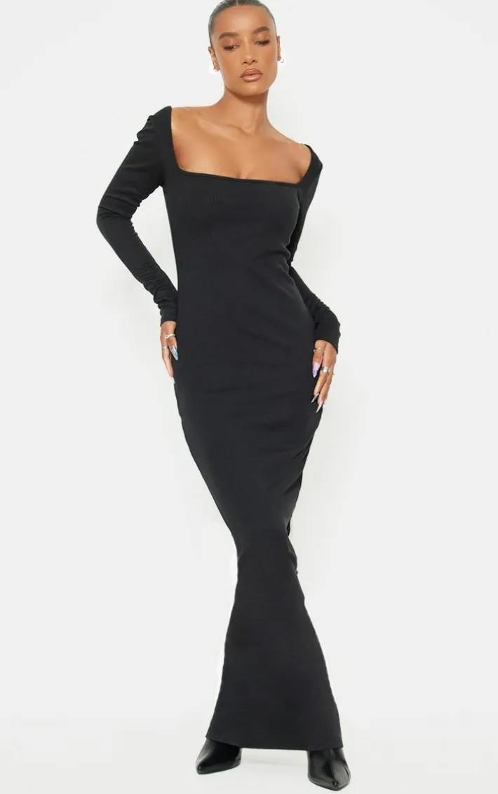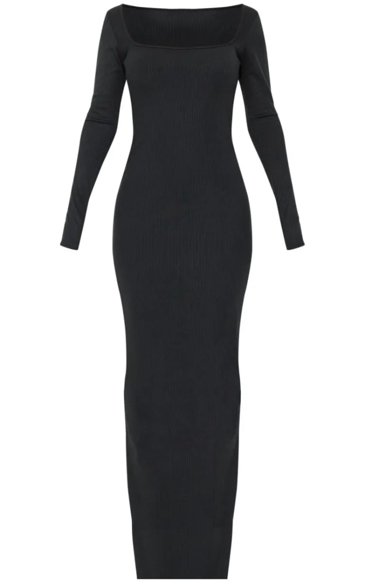 This black heavy rib square neck maxi dress is perfect for those throw on and go moments without sacrificing your style. Brought to you in a classic black hue, with a heavy rib material and square neck design, how can you resist? Pair with some faux leather boot heels and silver accessories for an edgy finish.