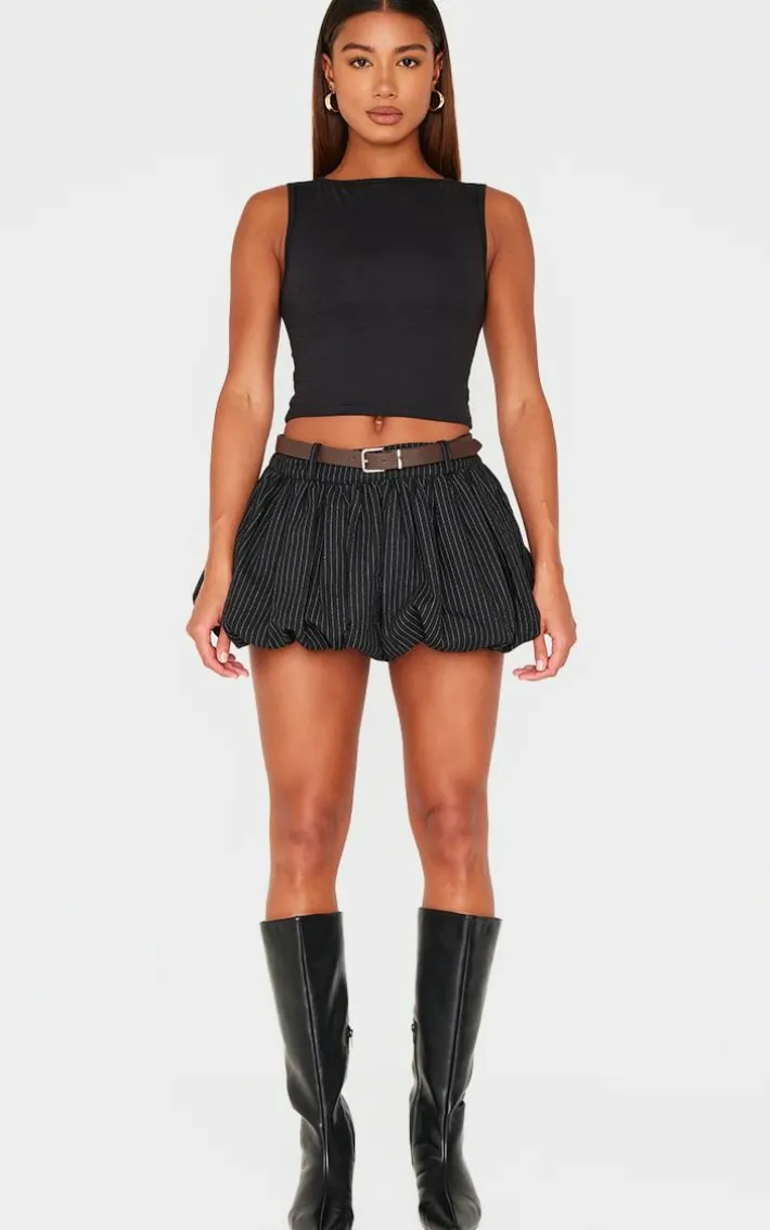 Make weekend styling look effortlessly chic with this black herringbone print belted tailored puffball mini skirt. Made from a black herringbone print material with a puffball design and belted detailing, how can you resist? Style this mini skirt with a top and knee length boots for a look we can’t get enough of right now.