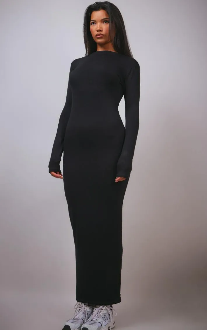Add some chic vibes to your look with this black high neck boat neck split maxi dress. Brought to you in a black material with a high neck design, what’s not to love? Its boat neck split detail and maxi length are all you need to stand out from the rest. Team with a pair of sneakers and a pair of gold hoops for a look like no other, it’s a definite yes from us.